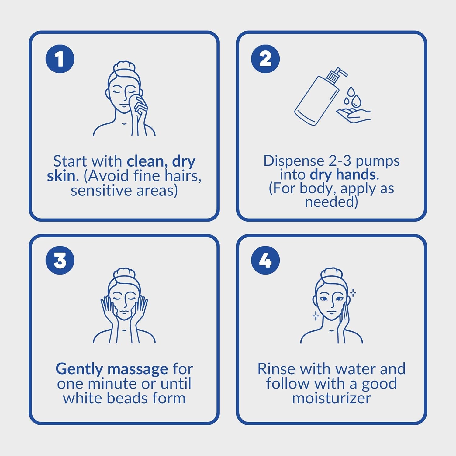 - + FACE & BODY + This exfoliating face and body wash is designed for the face and the body such as the neck, elbows, hands, and heels. Gently buff away dry skin and instantly polish and soften your skin.