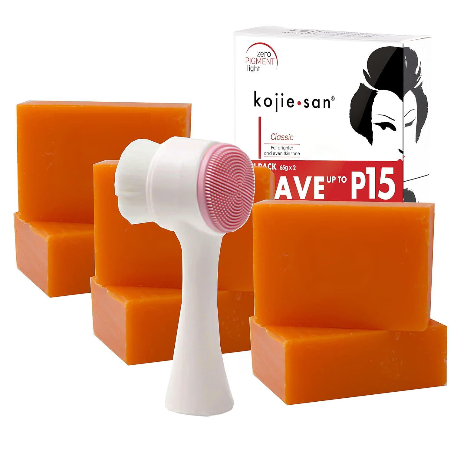 - Package includes: 6 Bars of 65g Kojie San Soap and 1 Relumins Deep Pore Facial Cleansing Brush