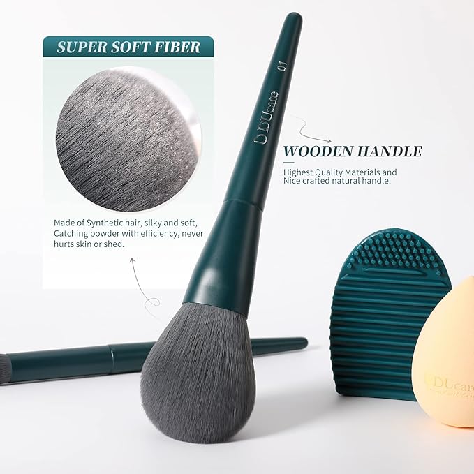 - DUcare makeup brush set containing 17 professional makeup brushes, and 2 FREE BONUS ITEMS: a makeup brush cleaner, DUcare foundation sponge.This makeup brushes set is vegan-friendly, cruelty-free, and made with recycled materials.