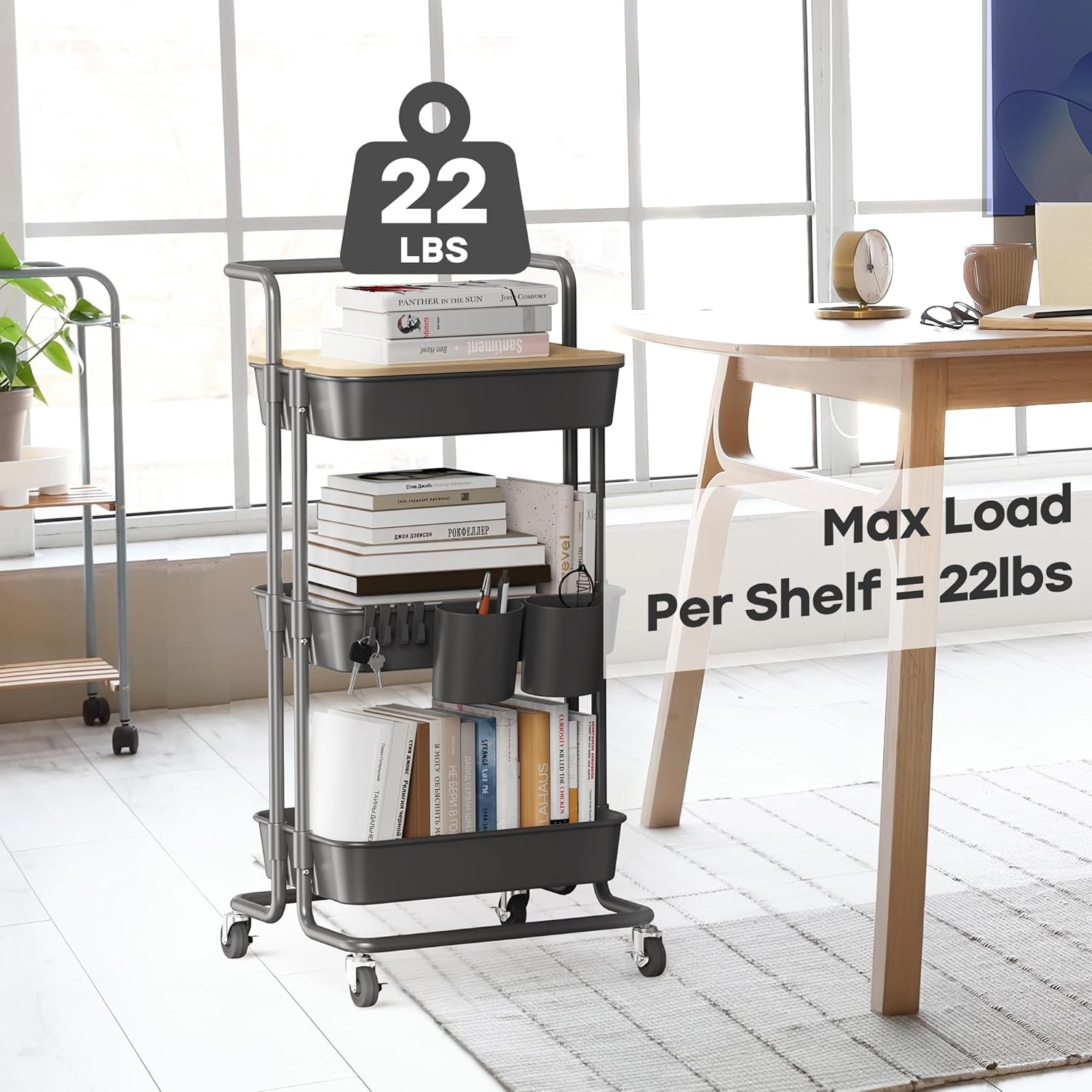 - Very Versatile: The rolling organizer cart can be used in many scenes. From craft station,kitchen storage, bathroom storage, laundry storage to a mobile home office station, serving as a work space or even a nightstand. The cart also excels in the garage, organizing tools, a bar cart for outdoor events, also a good moving storage helper in hospital.