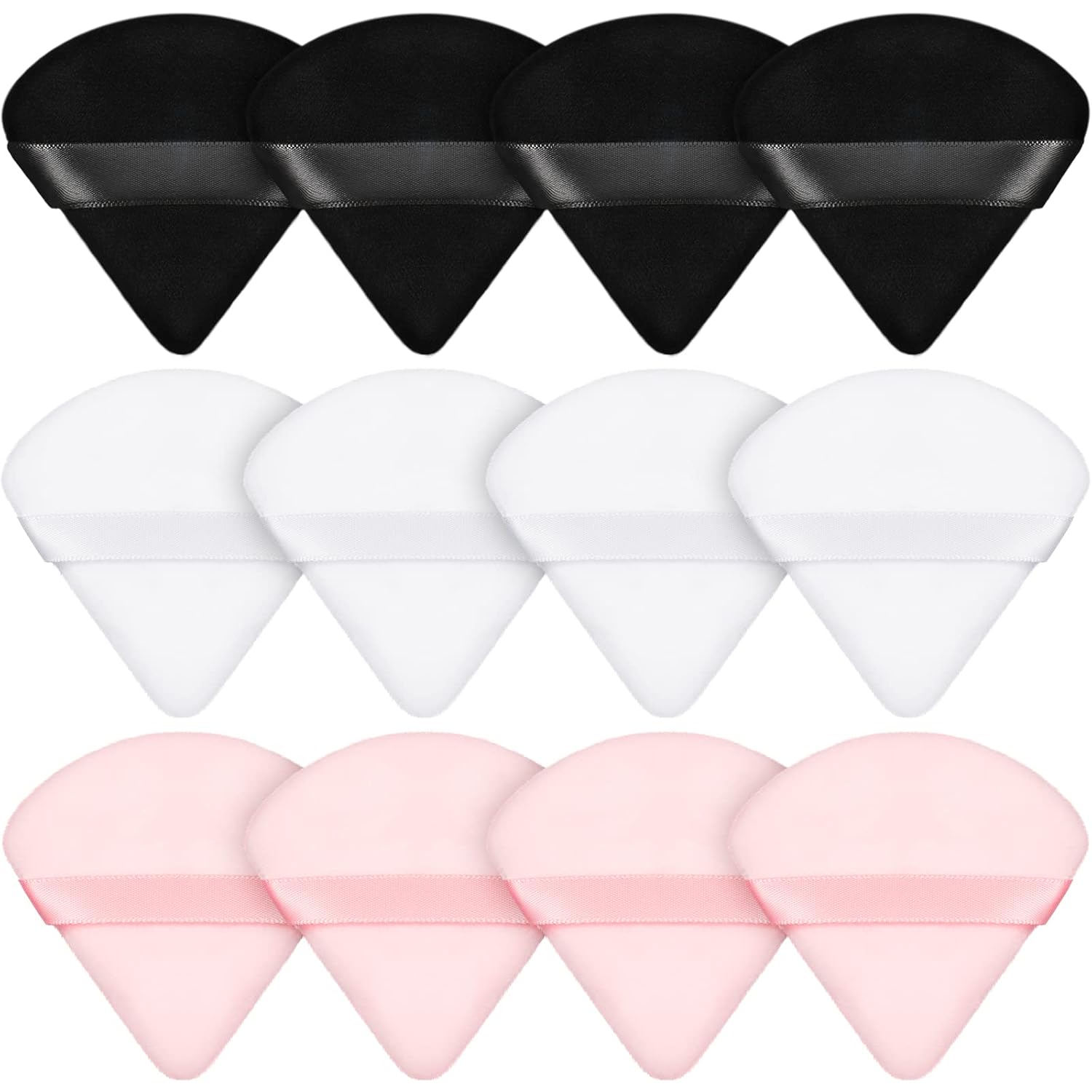 Maitys 12 Pieces Powder Puff Triangle Face Makeup Cosmetic for Loose Powder Soft Body Washable Reusable Foundation Sponge Mineral Wet Dry Makeup Tool for Women(Small,Black, White, Pink)
