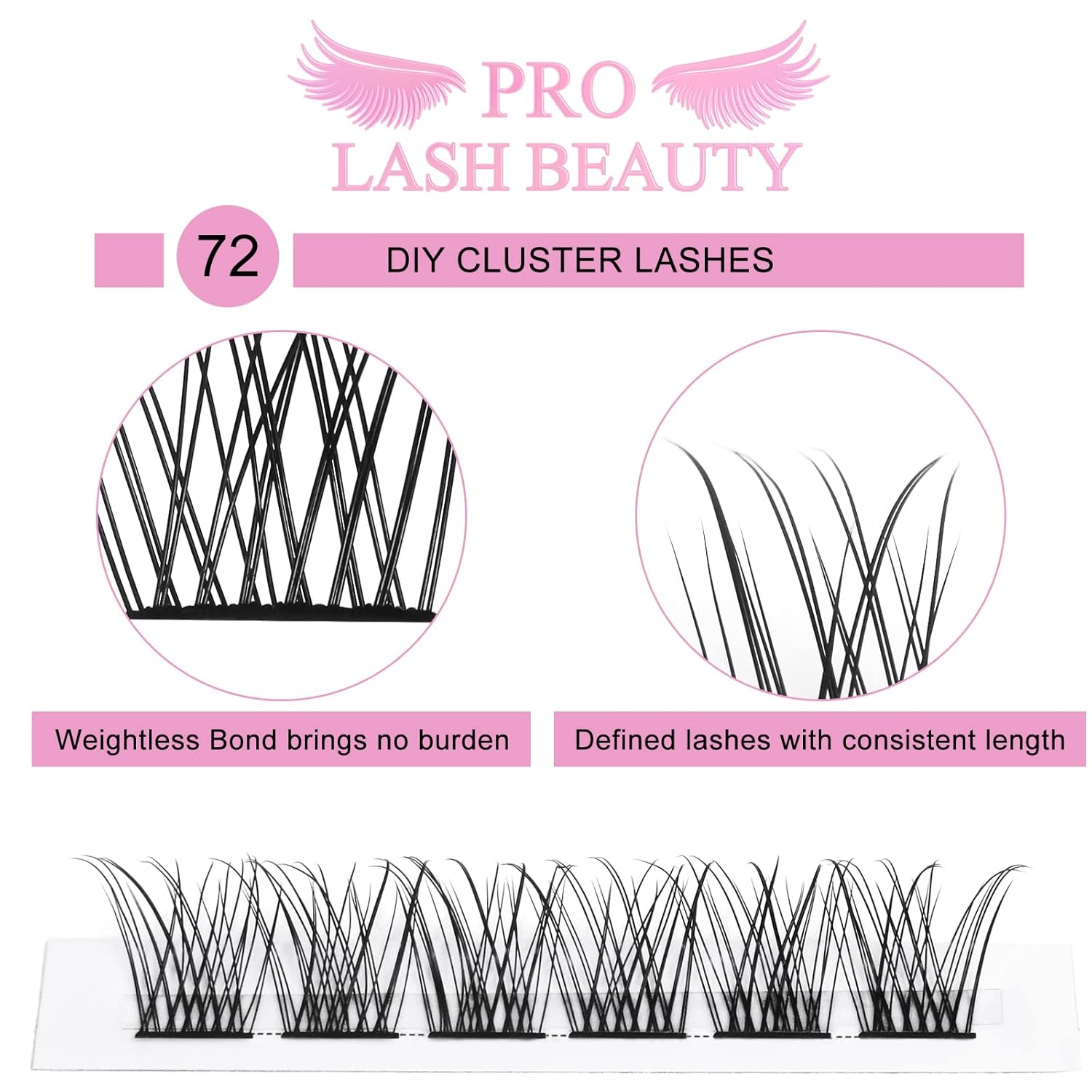 - Bring salon to your home: Pro LashBeauty Lash clusters are easy to apply. Divided individual Lashes into sections, easy to pick up and apply by yourself. You can apply the eyelashes with different lengths and styles according to different occasion. You will become a master of DIY lash extensions with a little practice!