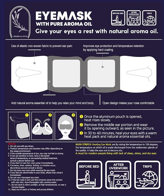 - Optimal Eye Health: Do you struggle with puffiness, dry eyes, or dark circles around your eyes? Invigorate and rejuvenate your skin in just 25 minutes with Hush Strips pure disposable steam eye mask!