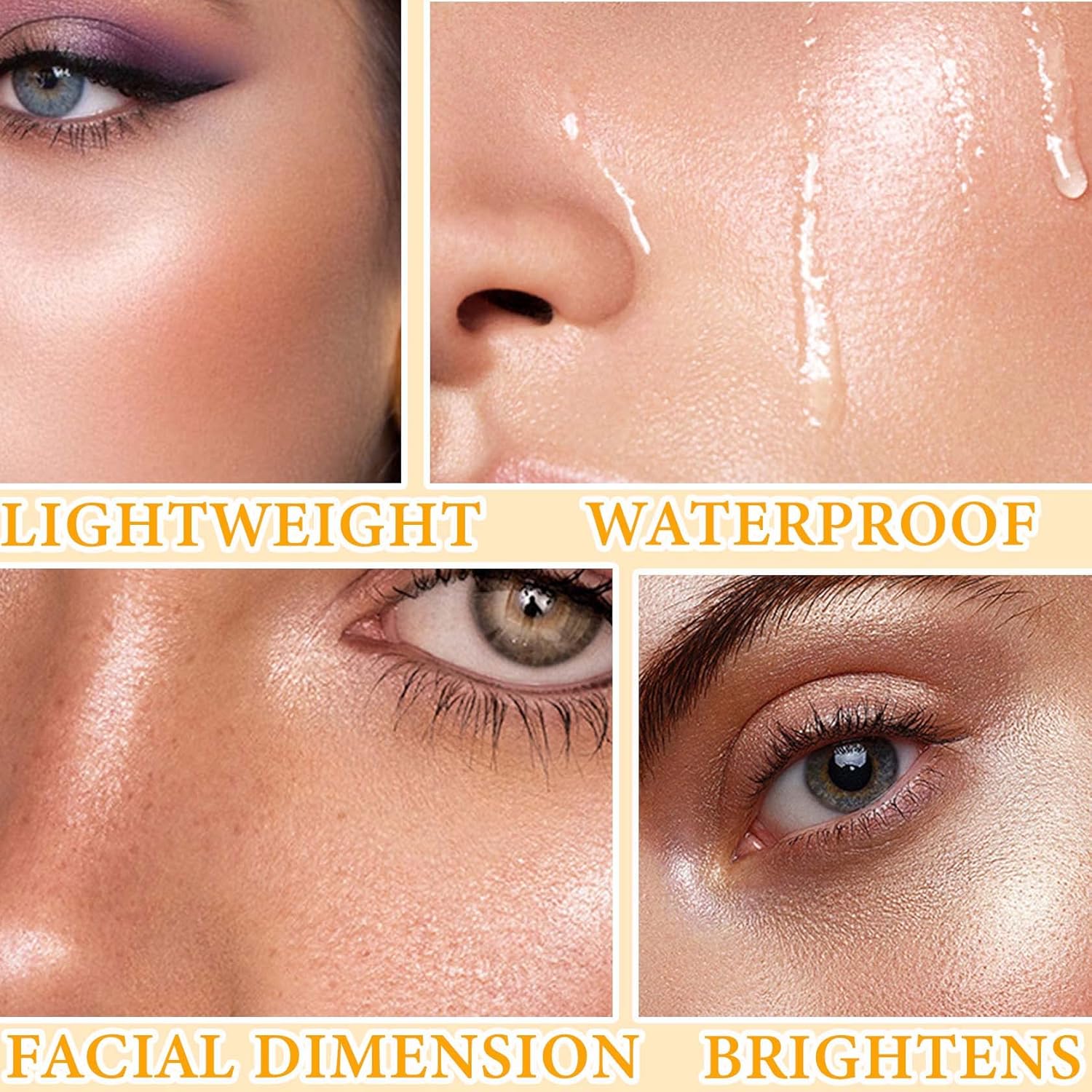 - 💗【Long Lasting&Waterproof】Highlighting stick has a long-lasting, waterproof and moisturizing formula that keeps your cheeks from caking, creasing or clogging pores, resulting in a non-floating, non-sticking and oil-controlling finish.