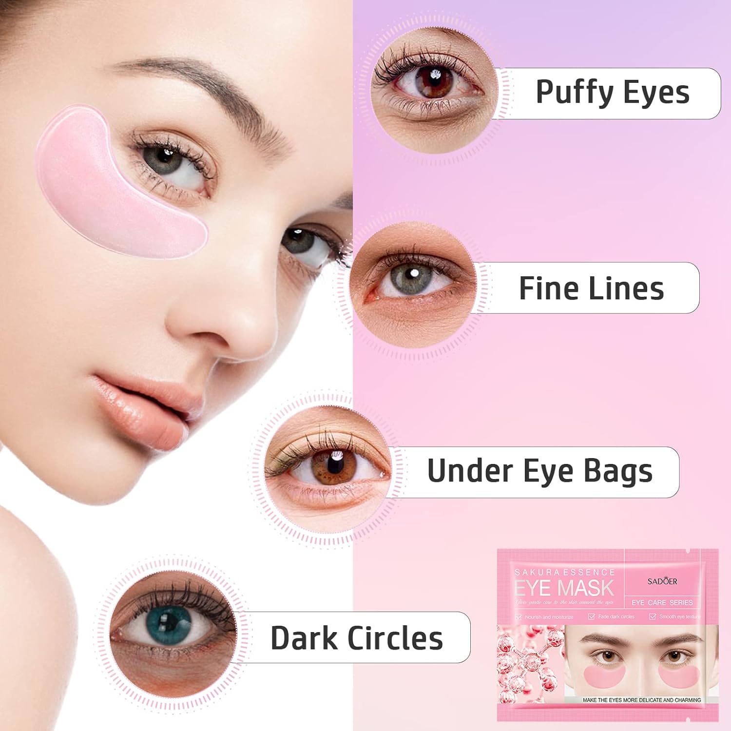 Adofect Eye Mask Collagen Eye Gel Pads Under Eye Mask for Puffiness and Dark Circle Under Eye Patches for Women and Men (Sakura pink)