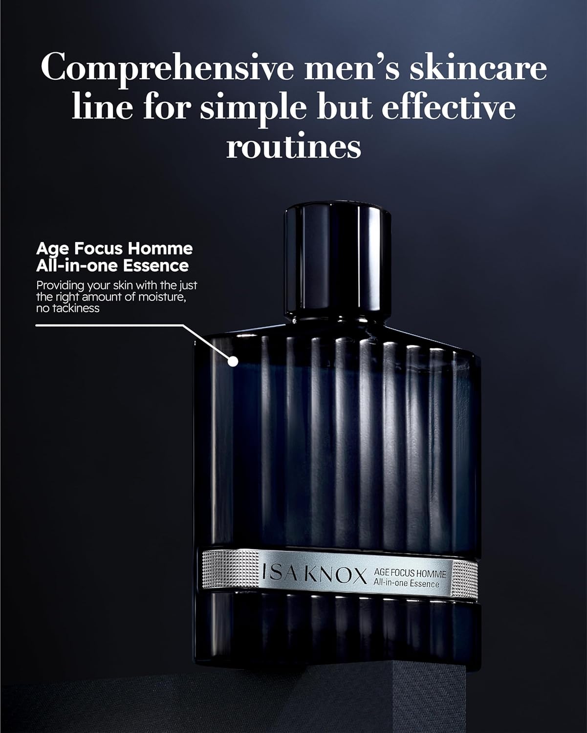 - ISA KNOX AGE FOCUS HOMME ALL-IN-ONE ESSENCE (120ml/4.1fl oz) provides the ultimate solution for a comprehensive and effective daily skin care for men by forming a refreshing and moisturizing barrier, maintaining long-lasting hydration for your skin.