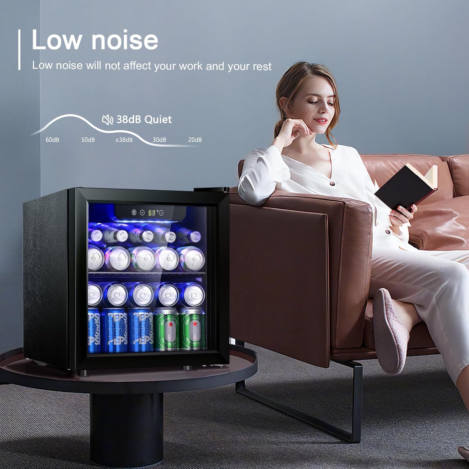 - IDEAL LIGHT and HUMIDITY: With its reinforced glass door with air tight seal and help to maintain an ideal humidity level, this beverage refrigerator gives you a compact and modern design perfect for your living room. Blue soft LED interior lighting not only beautifully showcases the wine but wonβt damage the wine.