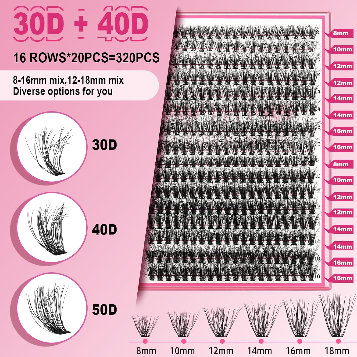 - Mix Lengths And Styles: You can get 320pcs lashes when you buy PRO 3D individual lashes. There are 30D, 40D, 30+40D, 40+50D styles. Also, there are different lengths cluster lashes to choose. You can freely choose to match individual lashes according to your needs on different occasions. PRO can meet your diverse needs.