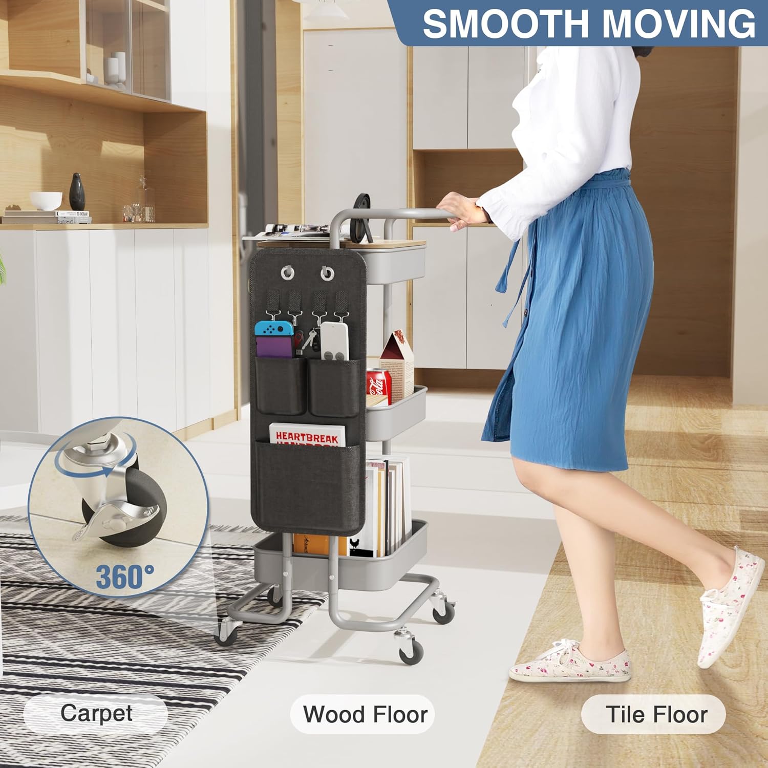 - Very Versatile: The DTK metal 3 tier rolling organizer cart can be used in many scenes. From craft station,kitchen storage, bathroom storage, laundry storage to a mobile home office station, serving as a work space or even a nightstand. The cart also excels in the garage, organizing tools, a bar cart for outdoor events, also a good moving storage helper in hospital.