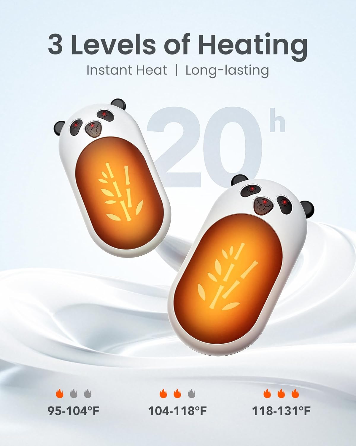 • 【20 Hrs*2 of Continuous Warmth】3 heating levels can be selected with just a simple button. Heats up to 130°F in just 2 seconds. The 3000mAh*2 capacity battery can last up to 20 Hours *2 of warmth