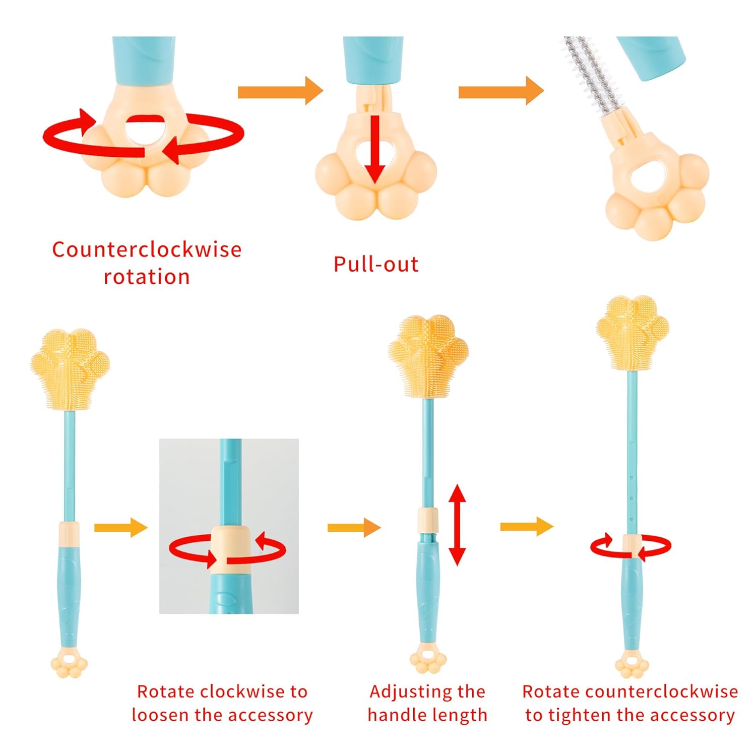 - The Pawprint silicone bottle brush: Upgraded design, more fitting to the bottom corner of the water cup, bottles. Y-shaped structure support, more effective cleaning.