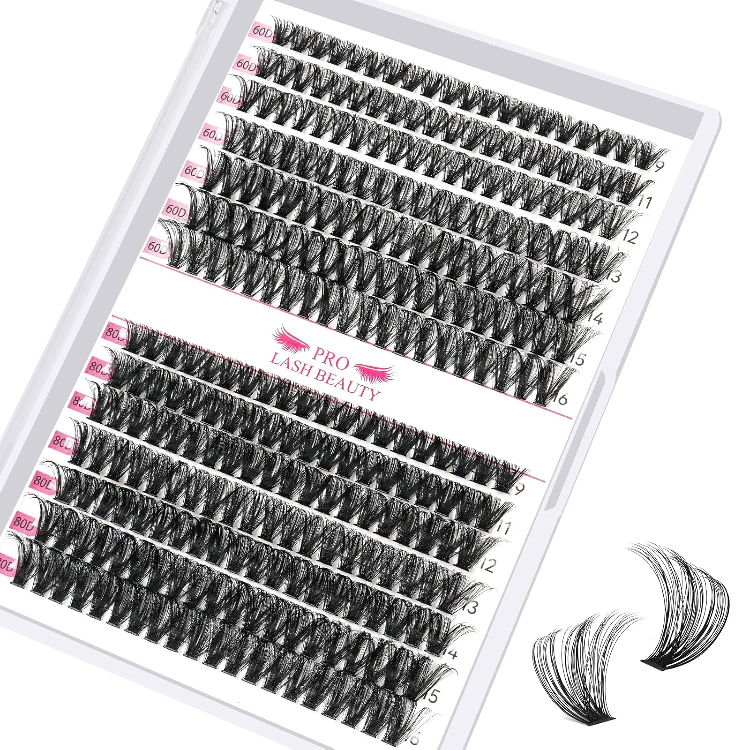 - Unique: The now very popular individual lashes are now available in PRO LashBeauty, and it is especially worth highlighting that PRO LashBeauty can provide 280 lashes in one tray! The blended lengths range from 8mm to 16mm, curls include C and D, and there are also have30D, 40D, 50D,30D+40D, 40D+50D.