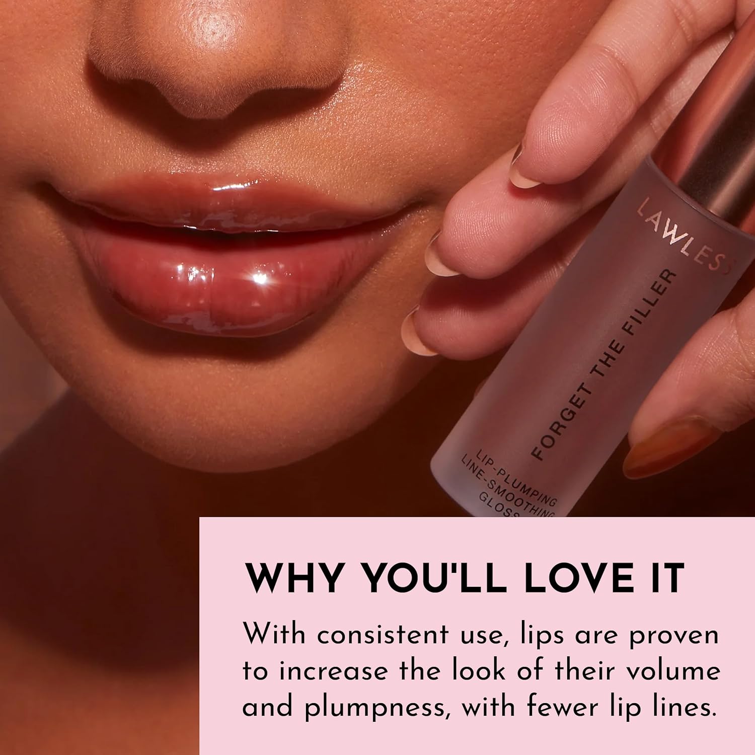 - Plumping Gloss: Experience immediate and long-term visible plumping, softening, and hydrating benefits with our Lawless Forget The Filler Lip-Plumper Line-Smoothing Gloss. This luxurious lip-plumping treatment and ultra-shiny gloss provide instant results, making lines appear filled and the lip surface smooth.