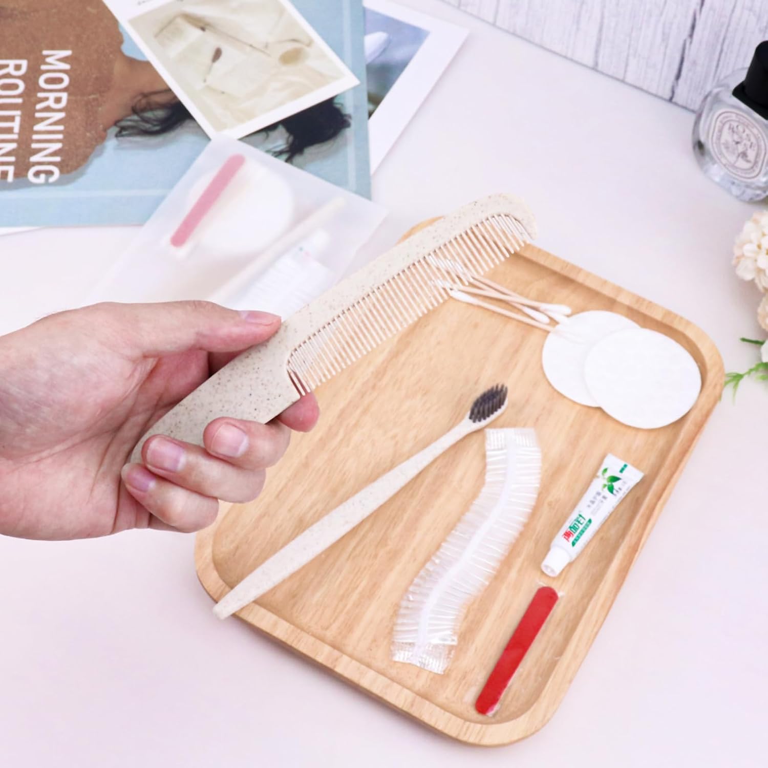- More sets to match: our hygiene travel kit comes in a pack of 100 sets. Each travel size hygiene products bulk set consists of a disposable Toothbrush, toothpaste, care package, comb, shower cap. personal care travel size toiletries make it even more comprehensive, convenient and comfortable to use. The personal care travel size toiletries are comprehensive, convenient, comfortable and secure.