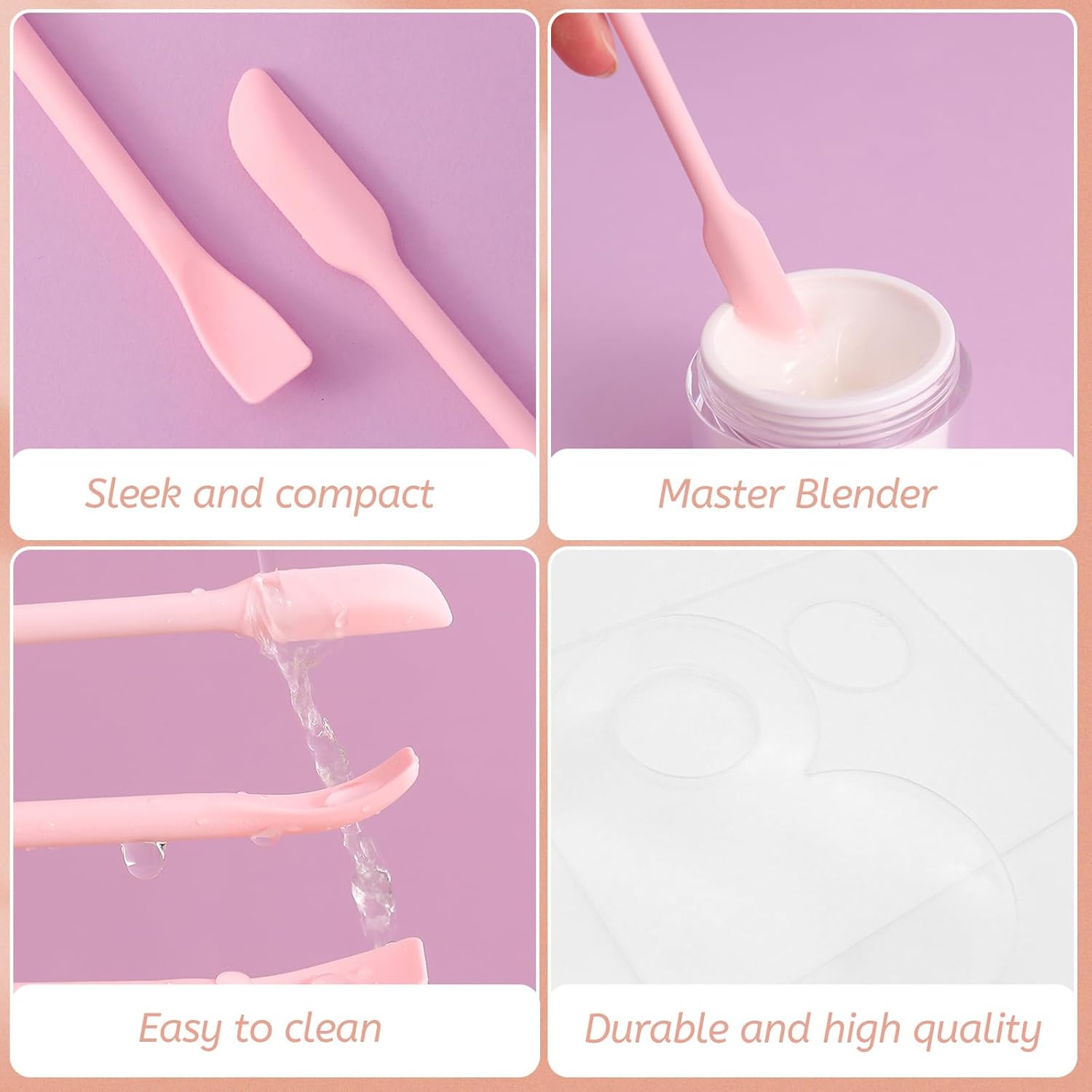 - Precise Applicators: Double head silicone makeup spatulas is accessible food materials, for effortlessly mixing colors and precisely applying products like foundation, concealer and treatments, save the amount and keep skin care products fresh. The soft material won't hurt your palette or skin