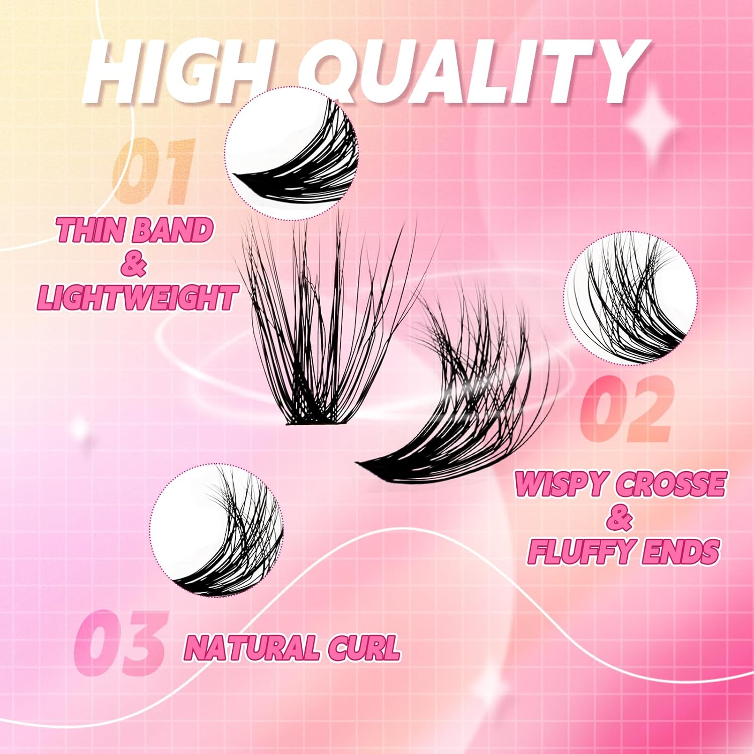 - Easy to use eyelash clusters๏ผThe lash clusters are easy to wear and will not easily fall apart. With our premium wispy cluster lashes, you can easily get a natural look or dramatic look.