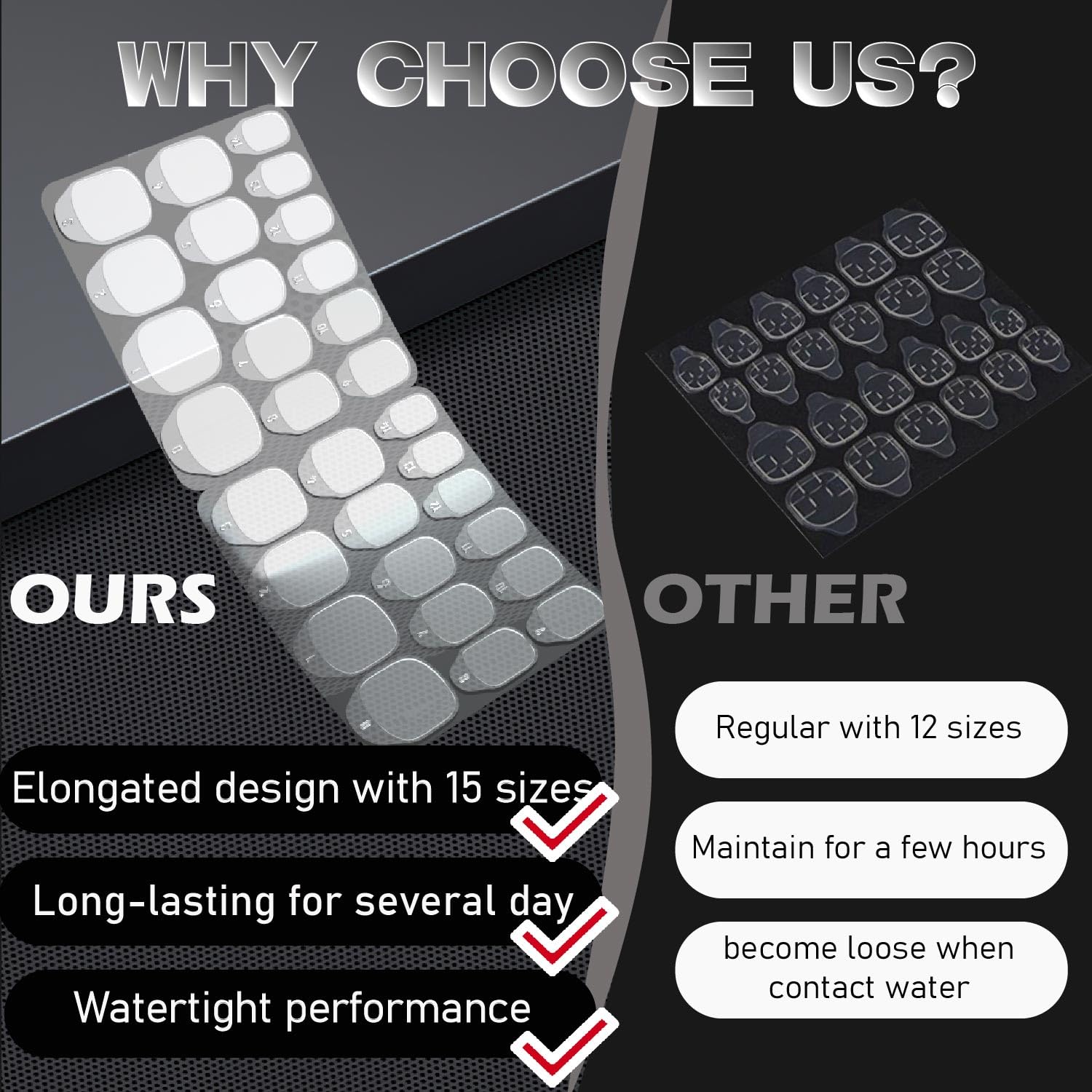 - 【Easy to Apply & Remove】 Each nail adhesive tab has a numbered handle for quick application. DIY-friendly and damage-free—no glue, no mess, no harm to natural nails. Perfect for beginners and professionals alike.