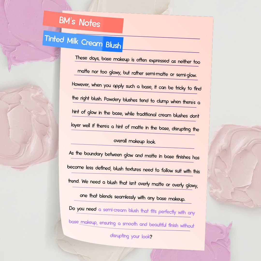 HOLIKA HOLIKA Colored Milk Cream Blush 05 PRETTY COOL: Glowing, Natural Makeup, Glossy Finish, Soft, Creamy Dough like texture, Shimmer, Radiant, Plumping, Cheek, Lightweight, Clean, Buildable