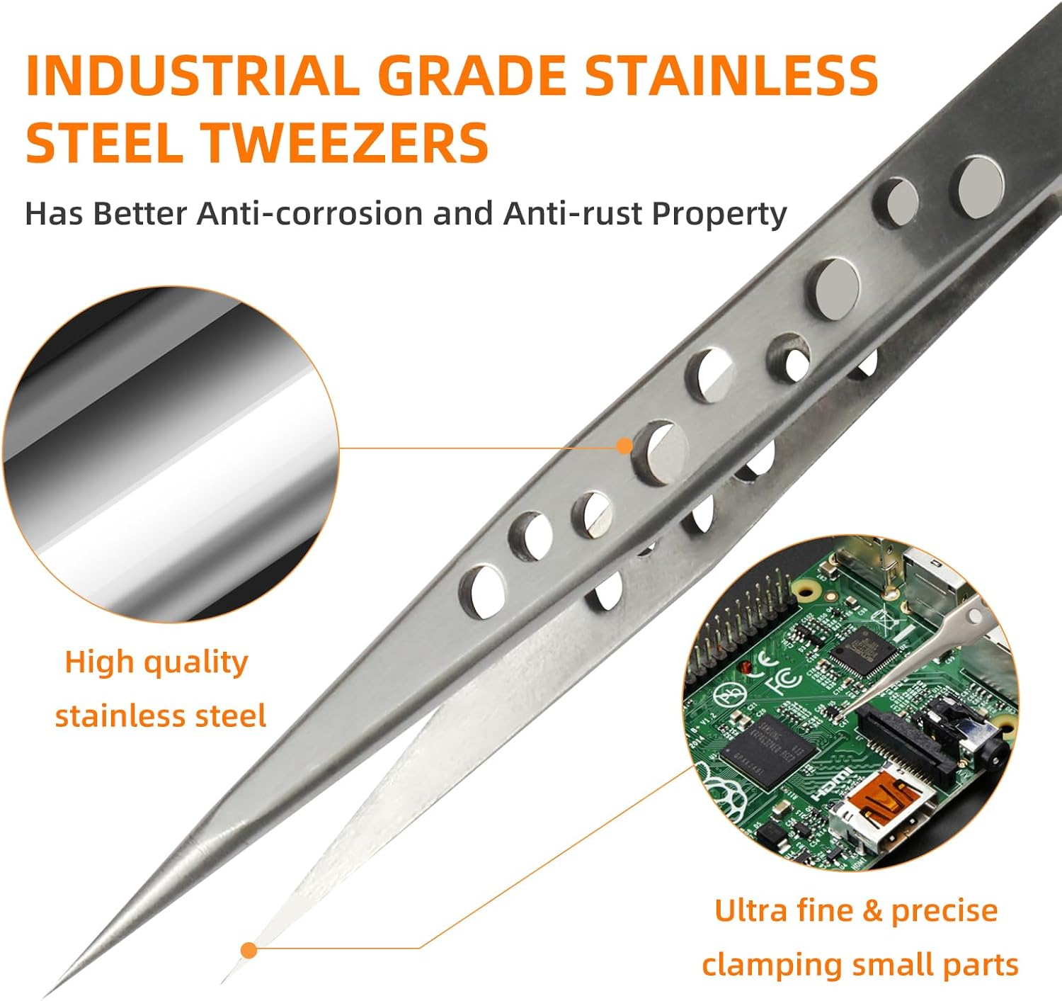 - ā Precision tweezer set made of high quality stainless steel, wear-resisting, rust protection, anti-corrosion; Frosted surface, nine-hole hollow design, anti-skid function. The teweezer tips are accurately aligned with anti-skid handle which can hold the tiny things precisely, making the effect better, give you a better feeling.