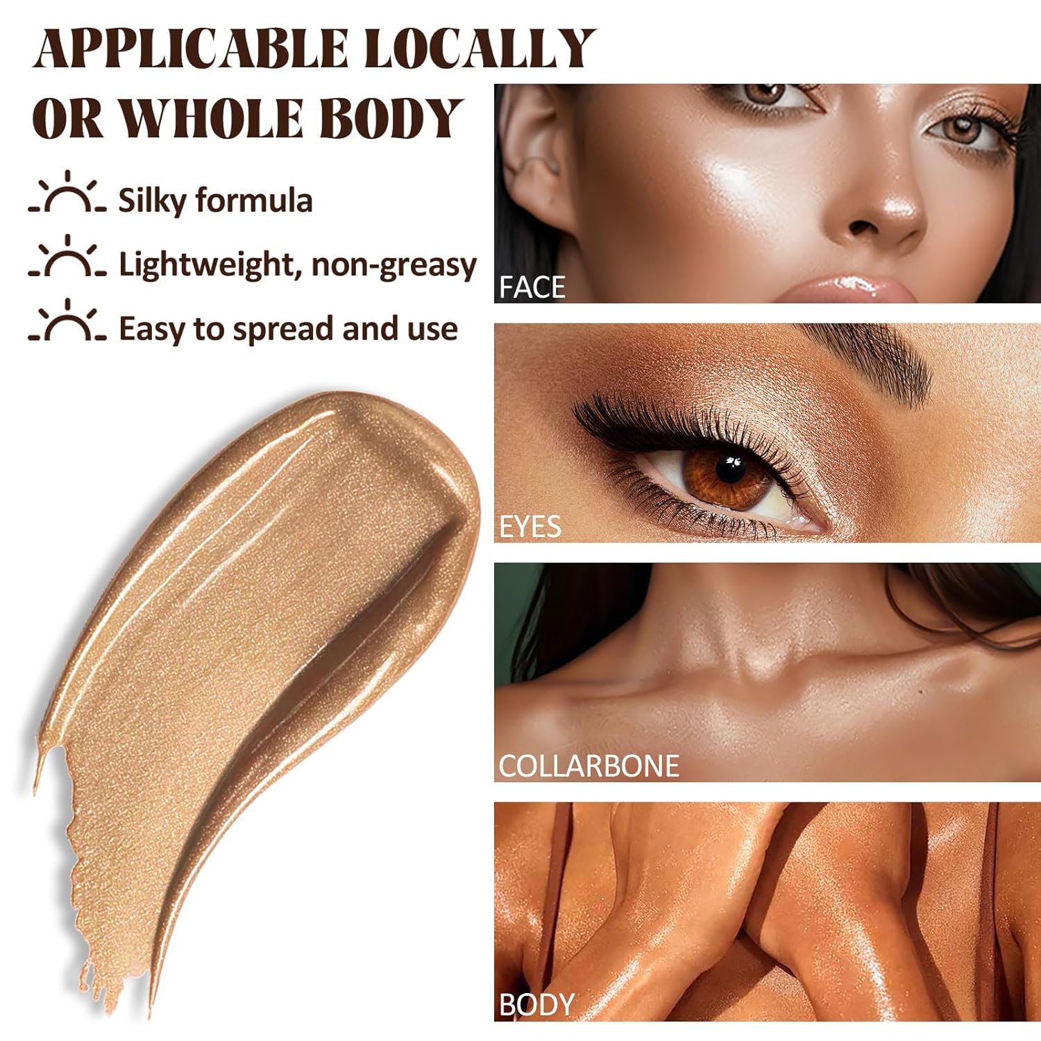 - 【A Beach Essential for Summer】Hit the beach in style with our Liquid Bronzer! Achieve that perfect summer glow without the risks of sun exposure. Whether you're lounging by the pool or hitting the sand, our lotion ensures you'll look and feel your best all summer long. Don't miss out on this summer essential!