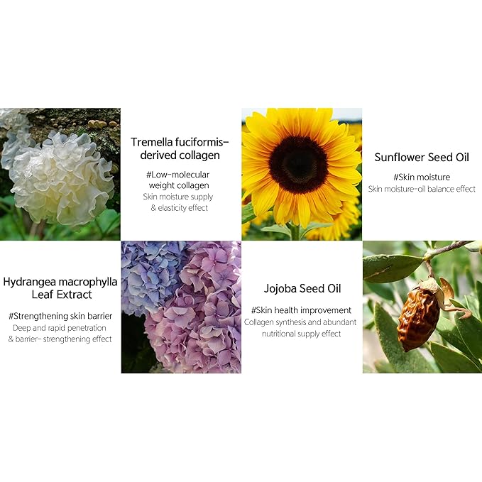 - Active Ingredients : Artemisia Princeps Leaf Water, Cetyl Ethylhexanoate, Butylene Glycol, Caprylic/Capric Triglyceride, Olea Europaea (Olive) Fruit Oil, Glycerin, Niacinamide, 1,2-Hexanediol, Water, Sodium Chloride, Propanediol, Hydroxyacetophenone, Hippophae Rhamnoides Fruit Oil, Adenosine, Ethylhexylglycerin, Zea Mays (Corn) Kernel Extract, Disodium EDTA, Hyaluronic Acid, Hydrolyzed Hyaluronic Acid, Sodium Hyaluronate, Citrus Unshiu Fruit Oil, Fructan, Citrus Junos Seed Extract, Glucose, Hippophae Rhamnoides Fruit Extract, Myrciaria Dubia Fruit Extract, Rumex Crispus Root Extract, Hippophae Rhamnoides Oil, Centella Asiatica Extract, Fragrance, Artemisia Princeps Leaf Water, Cetyl Ethylhexanoate, Butylene Glycol, Hydrogenated Polyisobutene, Niacinamide, Glycerin, 1,2-Hexanediol, Sodium Chloride, Water, Limnanthes Alba (Meadowfoam) Seed Oil, Propanediol, Hydroxyacetophenone, Adenosine, Ethylhexylglycerin, Melia Azadirachta Leaf Extract, Zea Mays (Com) Kernel Extract, Melia Azadirachta Flower Extract, Disodium EDTA, Coccinia Indica Fruit Extract, Hyaluronic Acid, Hydrolyzed Hyaluronic Acid, Sodium Hyaluronate, Amber Powder, Solanum Melongena (Eggplant) Fruit Extract, Oenothera Biennis (Evening Primrose) Oil, Curcuma Longa (Turmeric) Root Extract, Ocimum Sanctum Leaf Extract, Artemisia Princeps Leaf Extract, Corallina Officinalis Extract, Moringa Oleifera Seed Oil, Fructan, Glucose, Chamaecyparis Obtusa Leaf Extract, Centela Asiatica Extract, Fragrance, Artemisia Princeps Leaf Water, Helianthus Annuus (Sunflower) Seed Oil, Butylene Glycol, Ricinus Communis (Castor) Seed Oil, Glycerin, Niacinamide, 1,2-Hexanediol, Water, Sodium Chloride, Propanediol, Hydroxyacetophenone, Eclipta Prostrata Extract, Ethylhexylglycerin, Adenosine, Zea Mays (Corn) Kernel Extract, Disodium EDTA, Melia Azadirachta Leaf Extract, Melia Azadirachta Flower Extract, Hyaluronic Acid, Hydrolyzed Hyaluronic Acid, Sodium Hyaluronate, Cocinia Indica Fruit Extract, Moringa Oleifera Seed Oil, Aloe Barbadensis Flower Extract, Solanum Melongena (Eggplant) Fruit Extract, Fructan, Hydrangea Macrophylla Leaf Extract, Glucose, Simmondsia Chinensis (Jojoba) Seed Oil, Hydrolyzed Collagen, Corallina Officinalis Extract, Curcuma Longa (Turmeric) Root Extract, Ocimum Sanctum Leaf Extract, Brassica Oleracea Capitata (Cabbage) Leaf Extract, Borago Officinalis Extract, Chamomilla Recutita (Matricaria) Flower Extract, Centaurea Cyanus Flower Extract, Hyacinthus Orientalis (Hyacinth) Extract, Lavandula Angustifolia (Lavender) Flower Extract, Salvia Sclarea (Clary) Extract, Centella Asiatica Extract, Fragrance Artemisia Princeps Leaf Water, Cetyl Ethylhexanoate, Butylene Glycol, Caprylic/Capric Triglyceride, Olea Europaea (Olive) Fruit Oil, Glycerin, Niacinamide, 1,2-Hex… See more