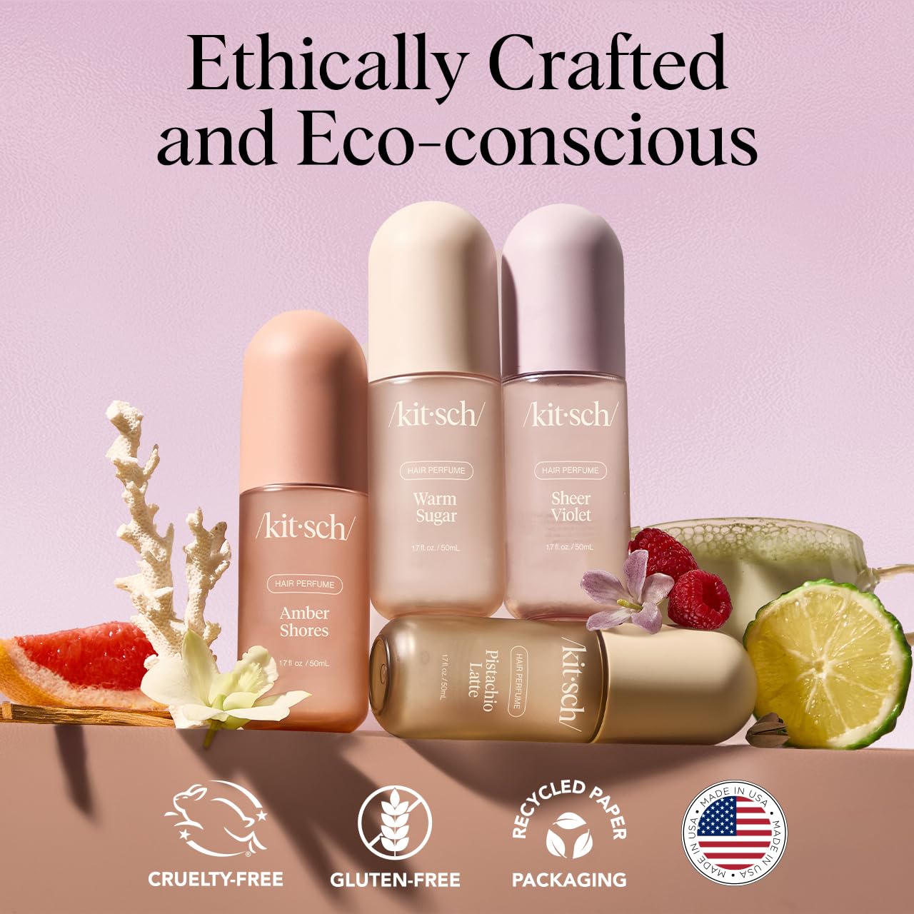 - CLEAN INGREDIENTS, CONSCIOUS FORMULA: Our Kitsch Hair Perfume is vegan, cruelty-free, and free from phthalates, parabens, PFAS, and synthetic CMRs. The 50mL size is ideal for on-the-go freshness, and the bottle is made with 30% PCR material—because great hair days shouldn’t come at the planet’s expense.