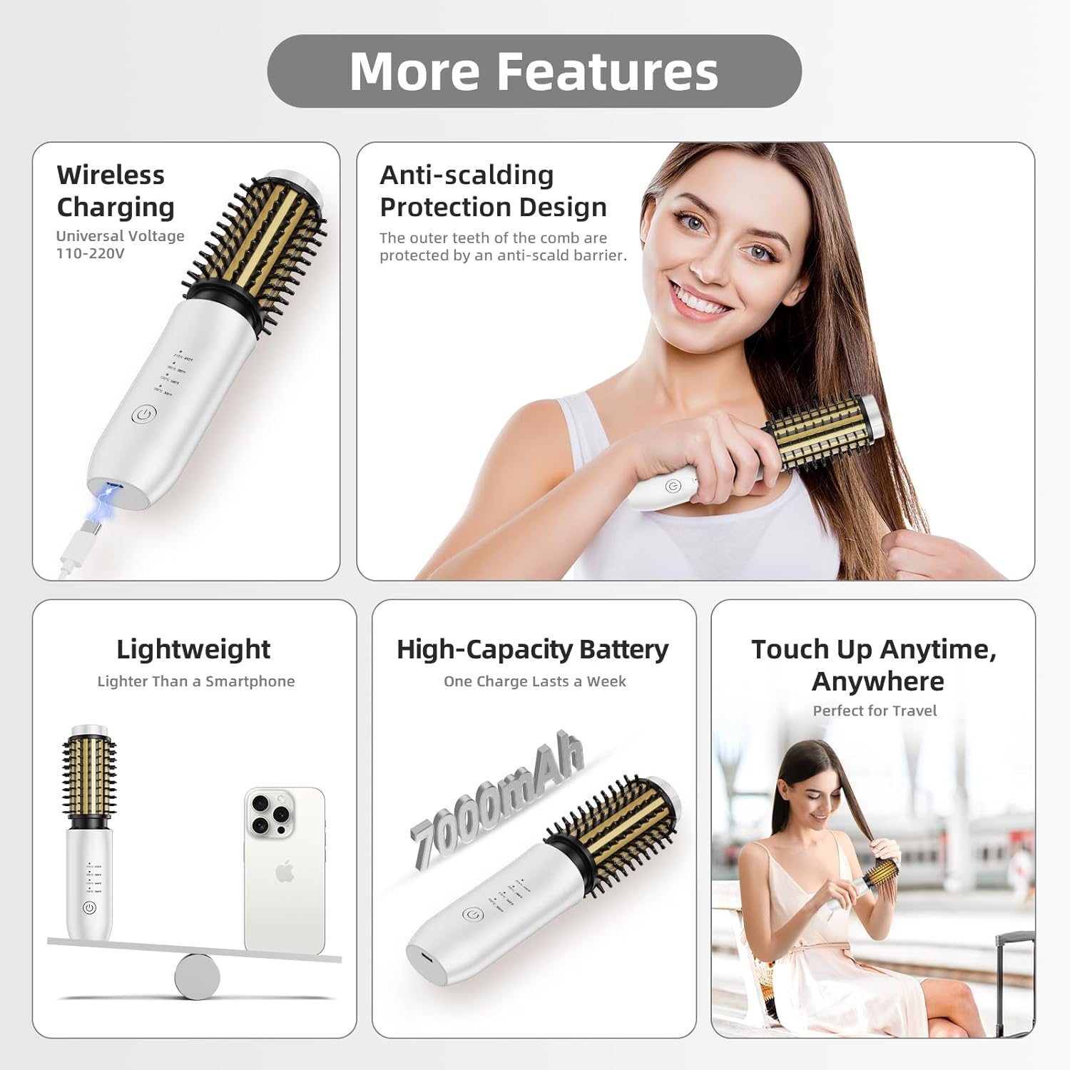- 【Handbag Emergency? 5-Min Hair Rescue】 Caught in rain or facing frizz before a meeting? A cordless hair brush heats in 60 seconds to smooth hair and restore style in under 5 minutes. Engineered as a secret weapon for real-life hair emergencies, it provides ultimate peace of mind when kept in a handbag.