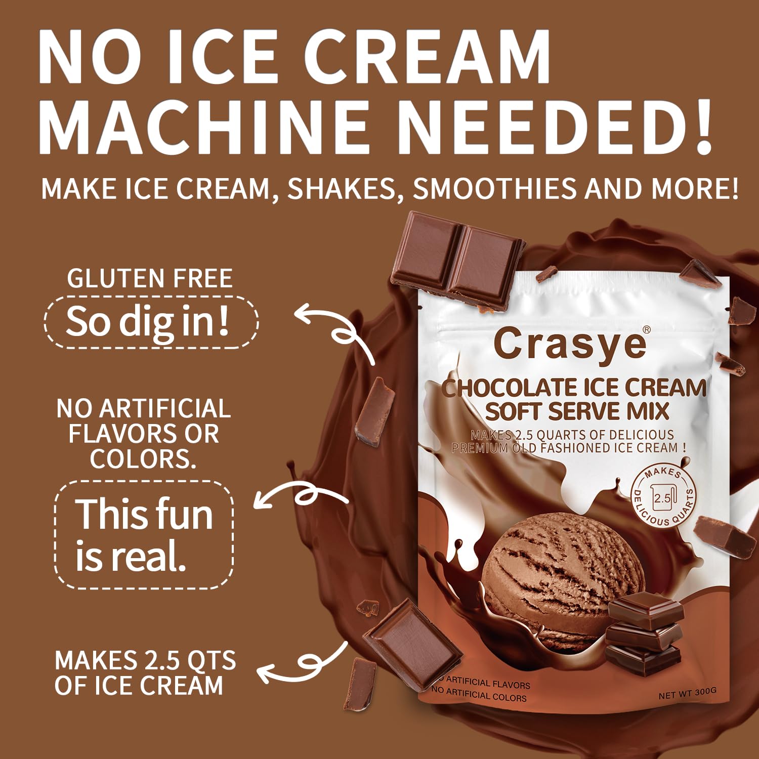 - Package Included: Our soft serve ice cream mixes can be stored for up to 24 months. Each 10 ounce pouch makes 2.5 quarts of ice cream.