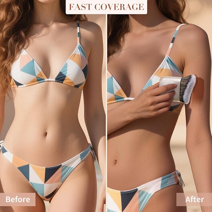 - FACE AND FULL BODY USE: Body Self Tanners is designed to suit the shape of your face & body. It can evenly apply the self-service tanning product to your face, collarbone, chest, arms, back and legs. Large brush head can quickly provide seamless and airbrushed finish, minimizing streaks and patchiness, leaving a flawless and natural-looking result.