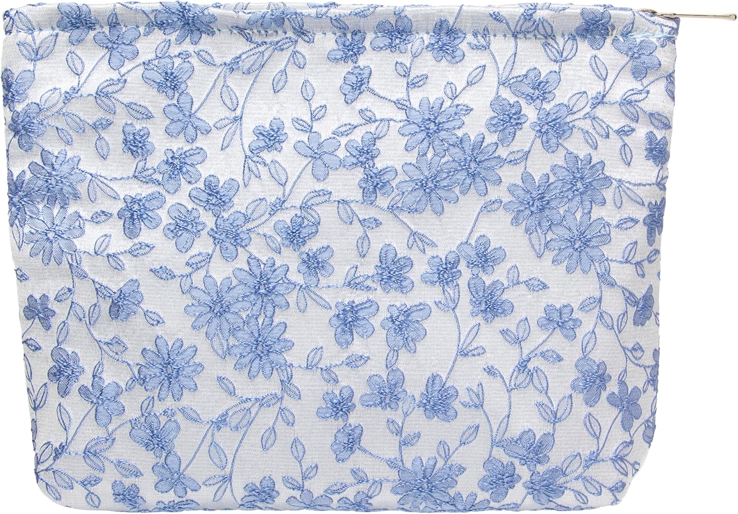 PAZIMIIK Makeup Bag Large Cotton Zipper Pouch for Purse Travel Canvas Make Up Organizer for Women Cosmetic,Brocade Silver